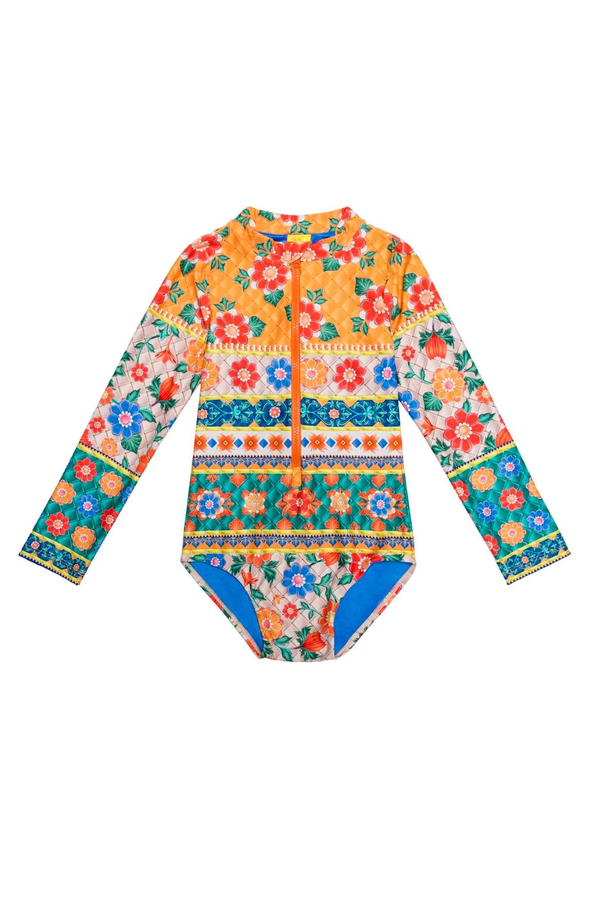 The Alaya Kid’s One Piece is designed for the adventurous spirit of children, and it features a lively placement print that captures the essence of youthful play. The front zipper allows for quick changes, while the long sleeves offer UPF 50+ protection to protect delicate skin from the sun’s rays. Engineered for comfort and freedom, it’s perfect for young explorers eager to dive into summer’s endless fun.