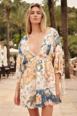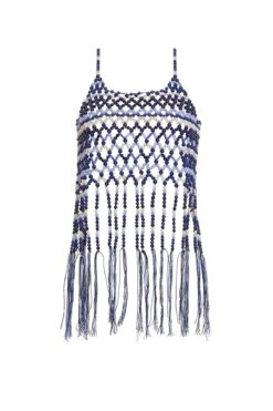 Our one-of-a-kind crossover one piece with an adjustable waist tie flatters any body type. Its handcrafted beaded trim and artisan-designed mix of prints make it an excellent option for a beach-to-street look.