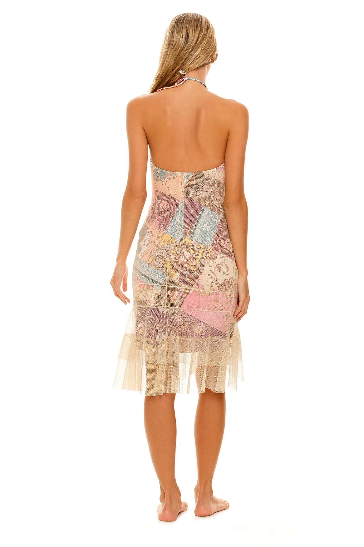 This dreamy midi dress with layered mesh and bohemian prints can be dressed up or down for any occasion. Its high-quality material, unique design, and handcrafted details make it a standout piece in any wardrobe.