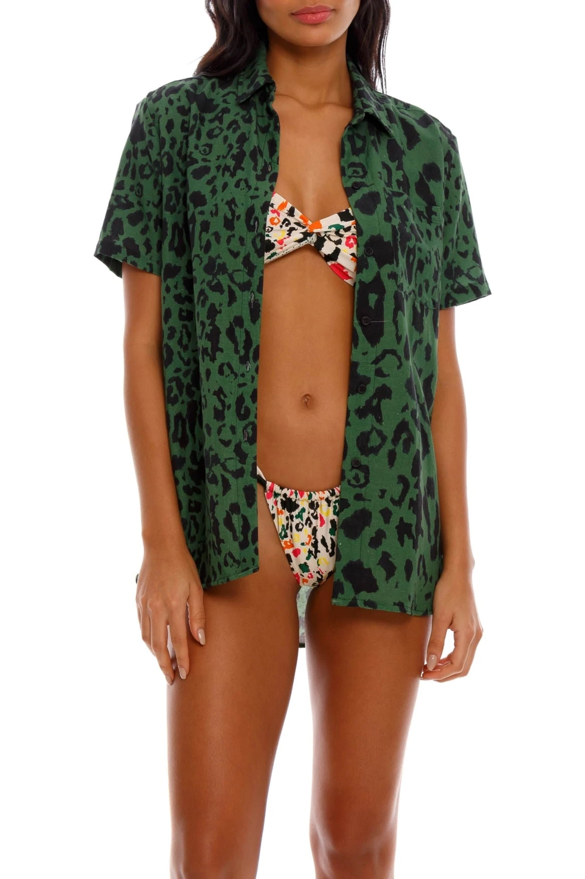 New silhouette! The Dean men’s shirt perfectly matches our Nick trunk from this collection. Ideal for a beach-to-street look, this summary-down shirt with short sleeves and a localized print is inspired by Chinese takeout boxes made with 46% Viscose, 23% Linen, and 31% Cotton. Hint hint: also perfect for girls! Now unisex