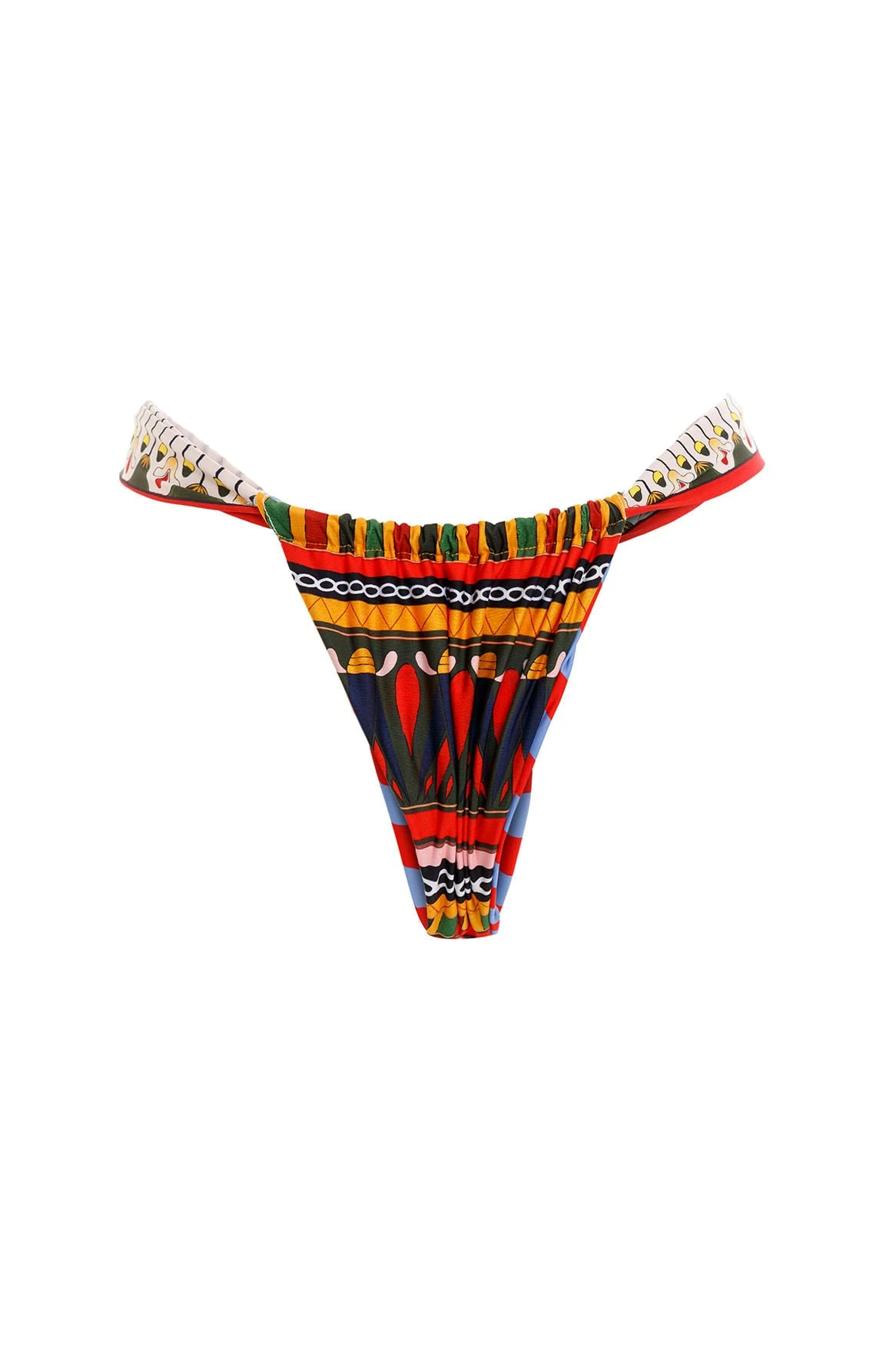 The Elsa reversible bikini bottom has adjustable coverage, perfect for a long tanning summer session. Without a doubt one of our best sellers! Atemporal, chic, and sophisticated, a piece to forever keep in your closet. You can complement this piece with our ready-to-wear line and mix and match this piece with different bikini tops from this collection. This drop creates a vibrant and maximalist visual proposal using elements, geometrics, patterns, and color blocks. Made with 96% Recycled Polyester and 4% Lycra.