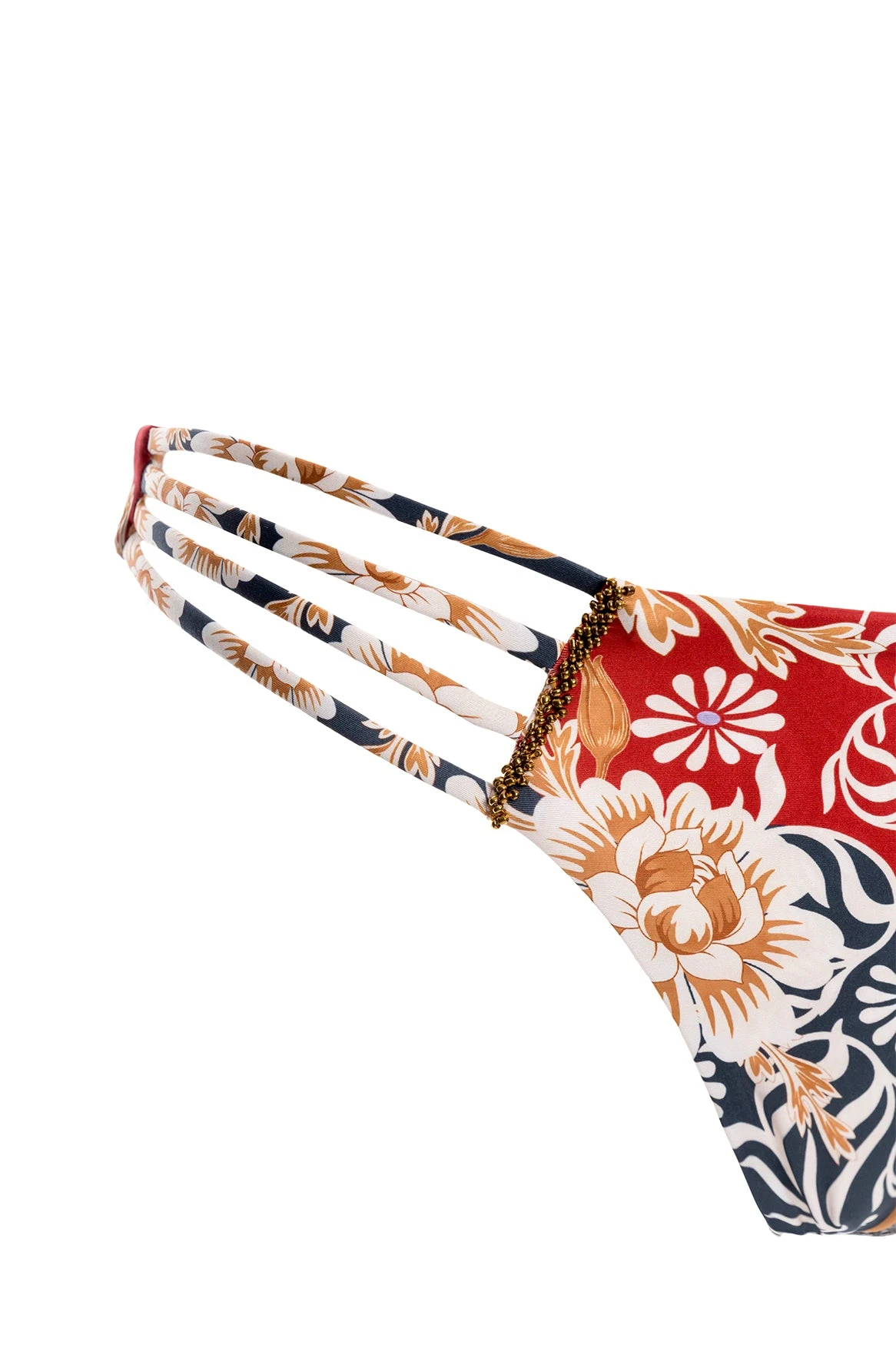 The Emma bikini bottom has the perfect fit and coverage. This bottom feels like a second skin. Perfect for tanning with adjustable straps that create a unique detail. Agua Bendita creates a drop inspired by ethereal upholstery, golden threads, patterns, flowers, and earth tones. Pieces full of art with a Maxi Boho style. Canvas, Dark Sea, Scarlet, Toffee, Steel, and Black. Fera represents the risk-taking, bold and maximalist explorer as the heart of AB. This garment is perfect for all bodies.