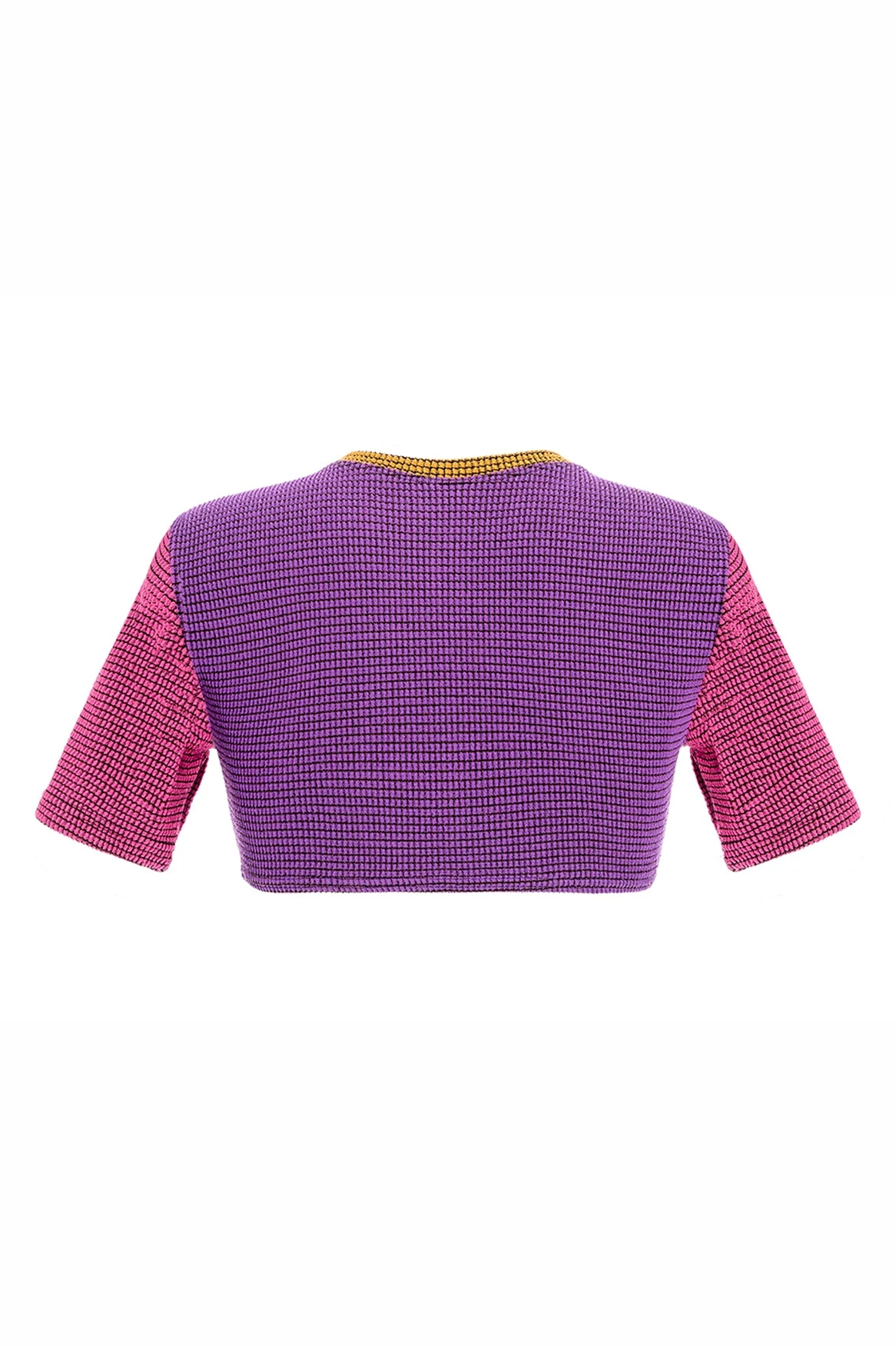 A key look. The Hazel bikini top is the ideal piece for a day-to-night look. With a localized print, Agua Bendita creates a collection inspired by the night, music, party, and the color of the sea that mixes with the colors of the sunset and the night. The shape of the waves and the sky. The taste of a cocktail, sexy and risky. A disruptive visual proposal based on irregular chromatic effects. Vini is energetic and always on the go, not afraid to be the center of attention. This garment is perfect for all bodies!