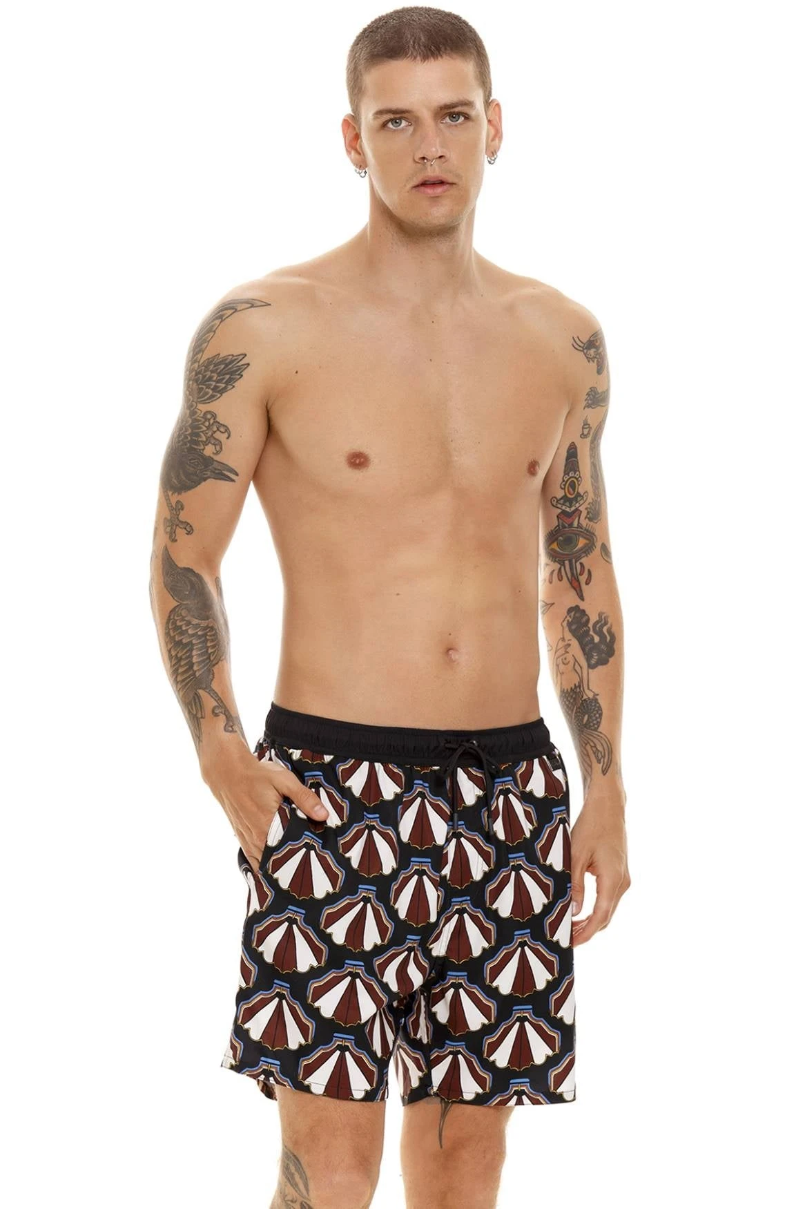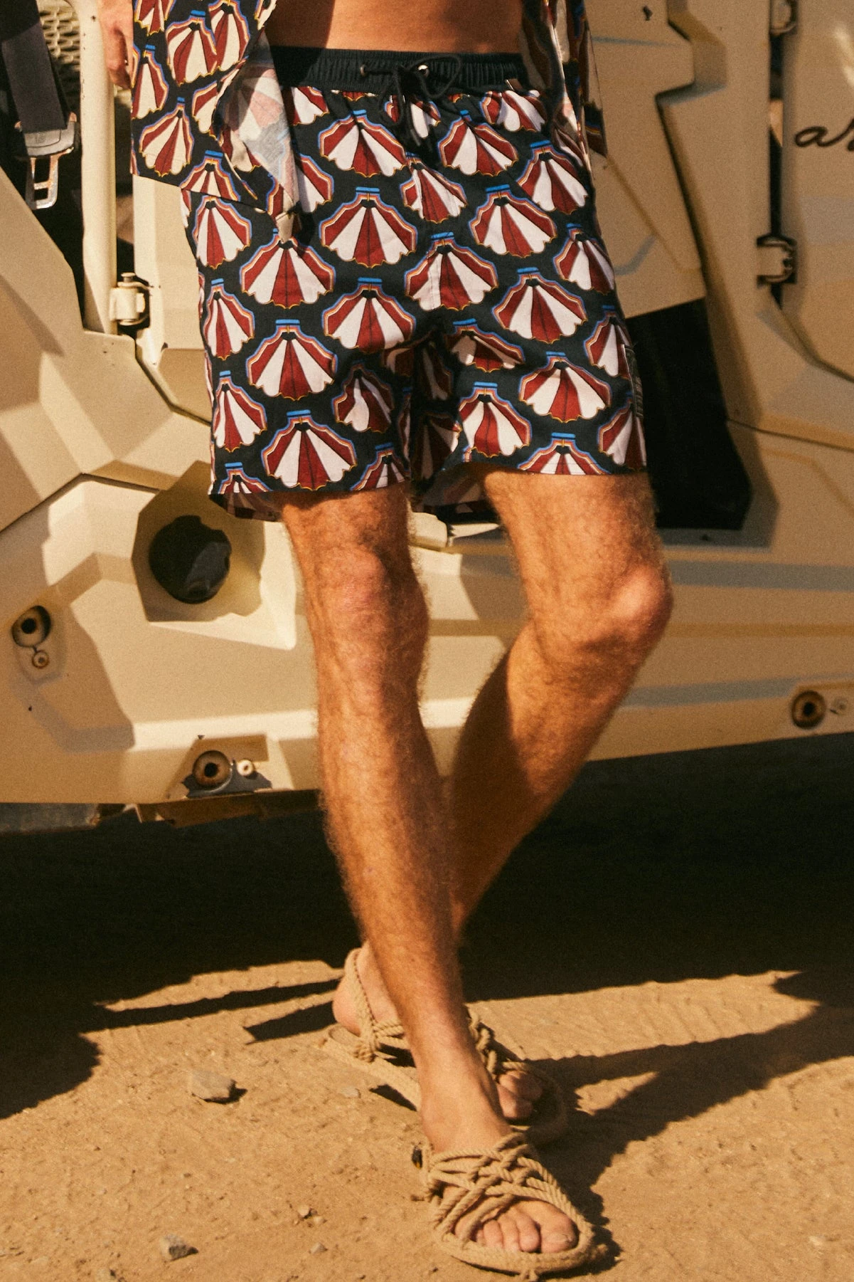 Our lightweight men’s swim trunks feature a colorful terracota-inspired print that adds a touch of color and masculinity to any beach or pool day. With two side pockets, these trunks are stylish and functional for any water-related activity.