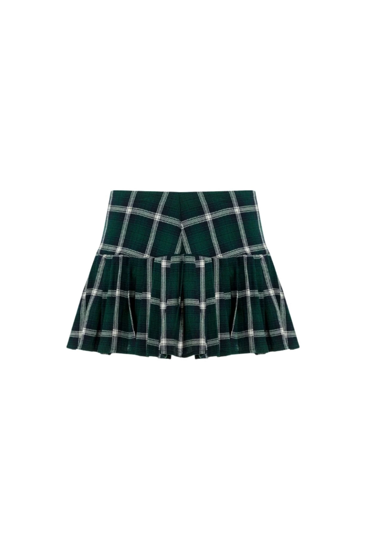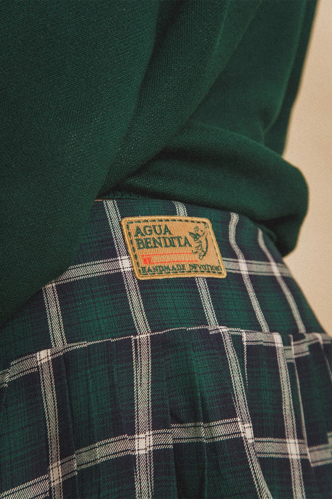 New Silhouette! Low-rise mini skirt with a printed plaid pattern. It features creases at the bottom and an exclusive brand patch at the back. An AB-exclusive piece made to create unique looks.