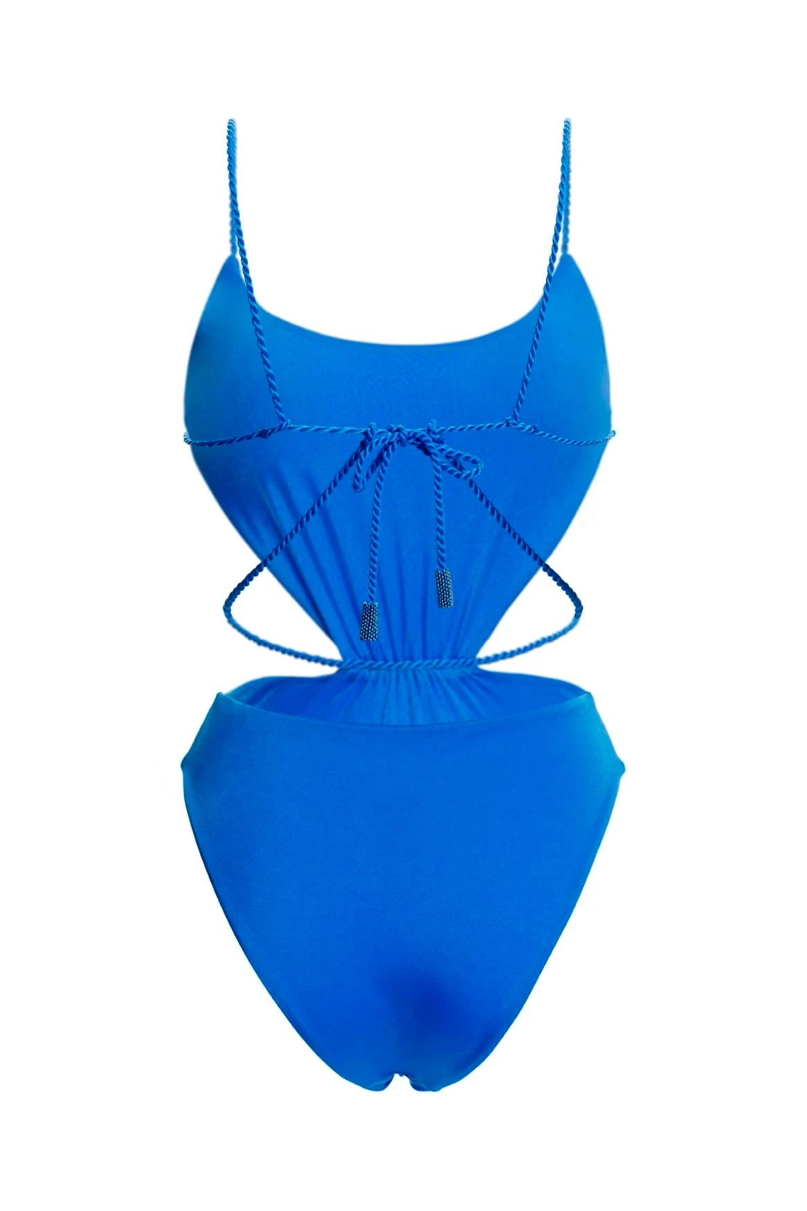 The Nadine One Piece swimsuit captivates with its bold, solid hue and figure-flattering waist details. Twisted straps and elegant strap-end accents add a touch of sophistication, making this swimsuit a chic choice for poolside glamour or beachside relaxation.