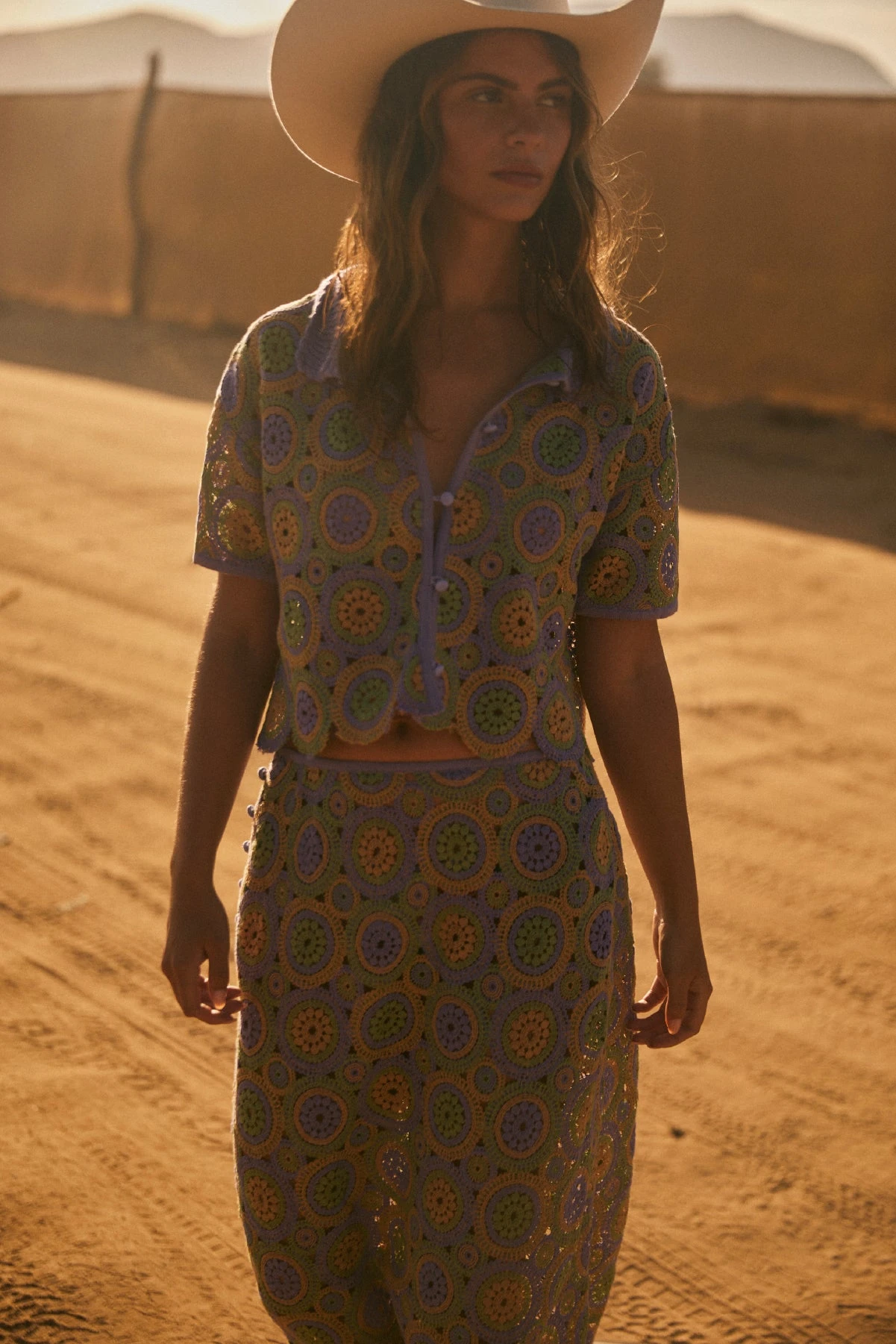 Discover the Nui Skirt, an easy-breezy essential featured in an open crochet look. It’s the perfect complement to the Lillian Shirt or any top, making it great for a summer beachy look. Elevate your beach ensemble with a skirt that adds a touch of elegance and artistry.