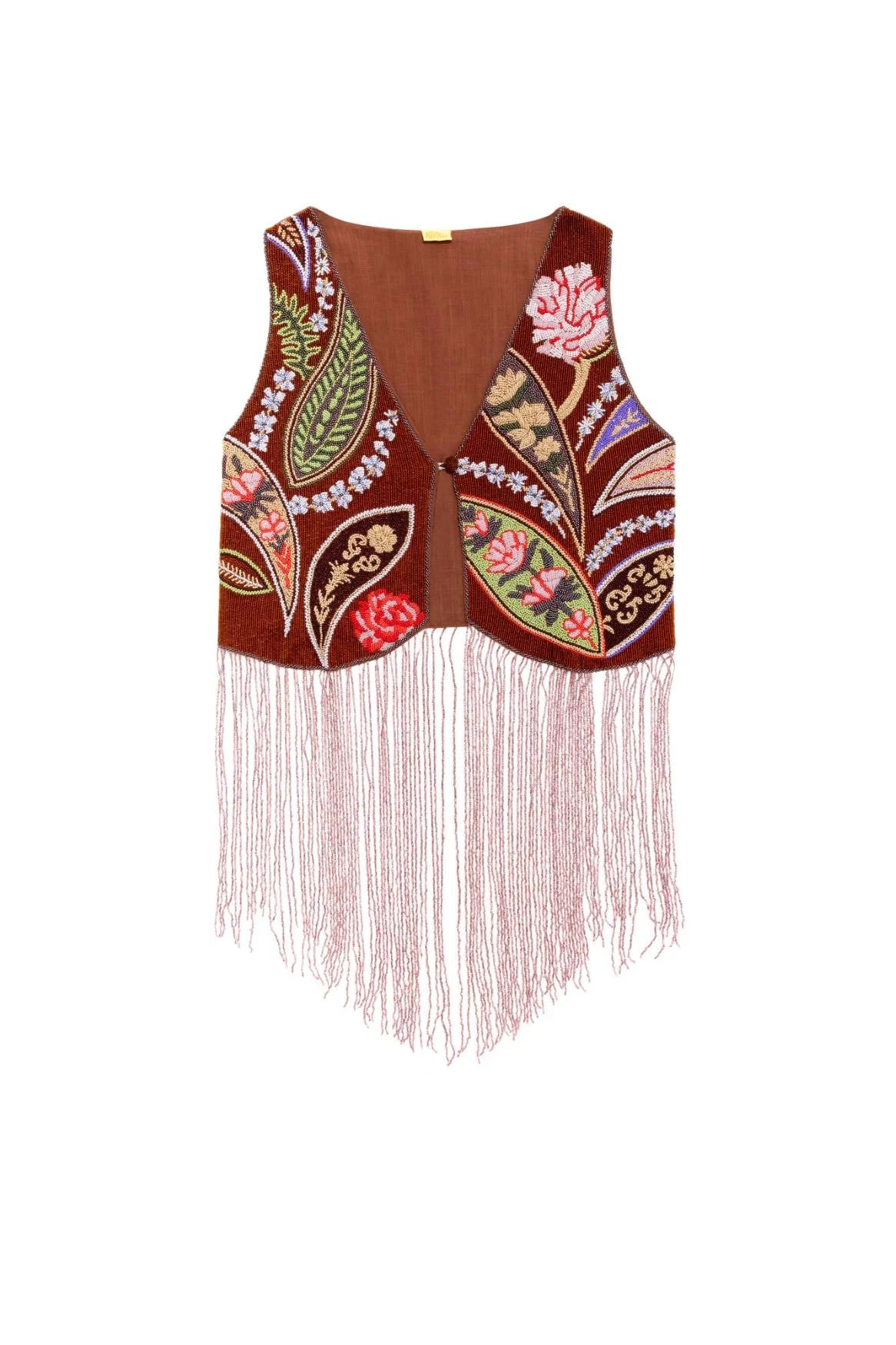 Our Otis Vest is ultra embroidered with beads and fringe trim. Each of its details is inspired by the land of flowers, making it undoubtedly an exclusive and artistic garment from this collection.