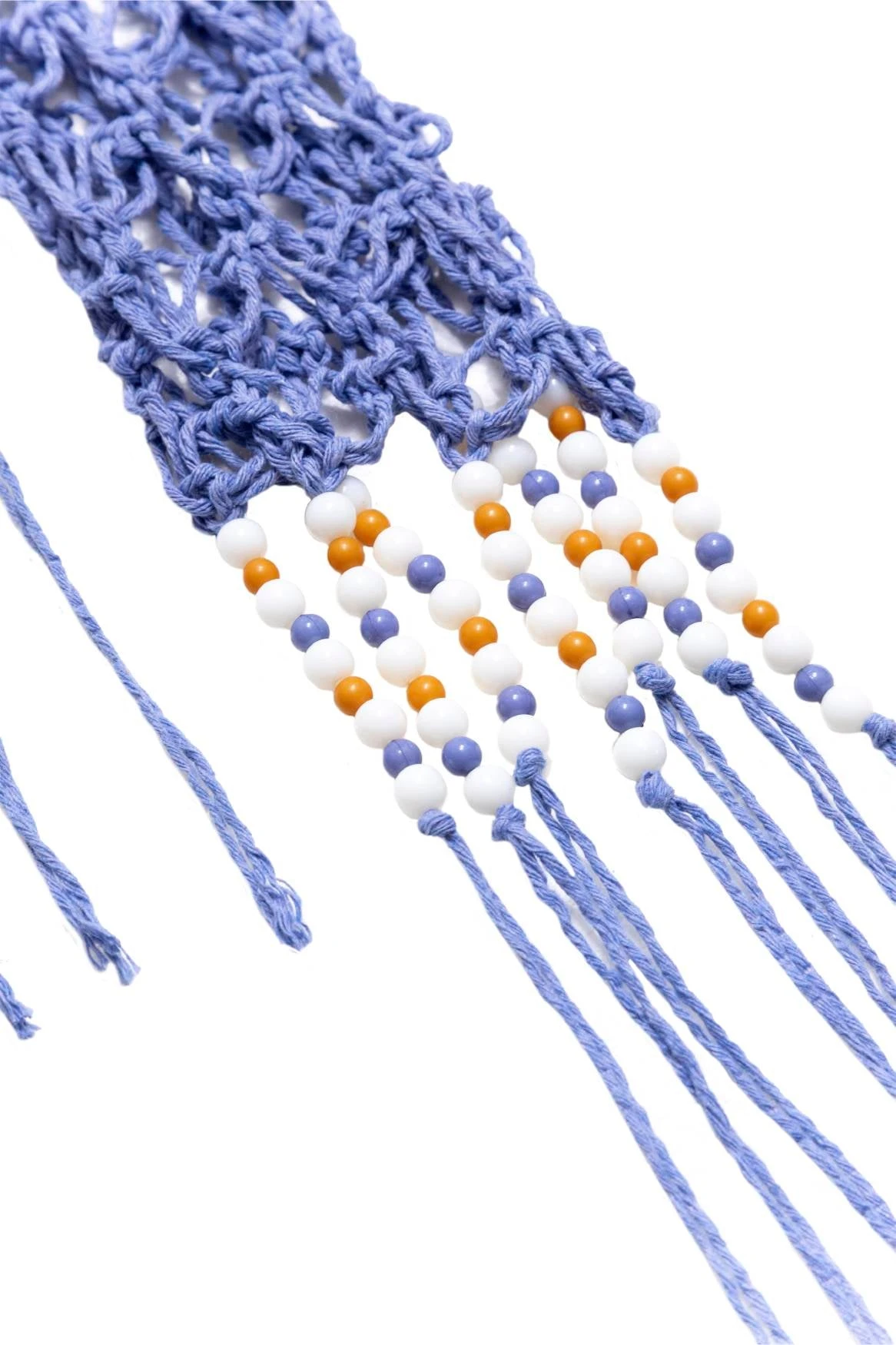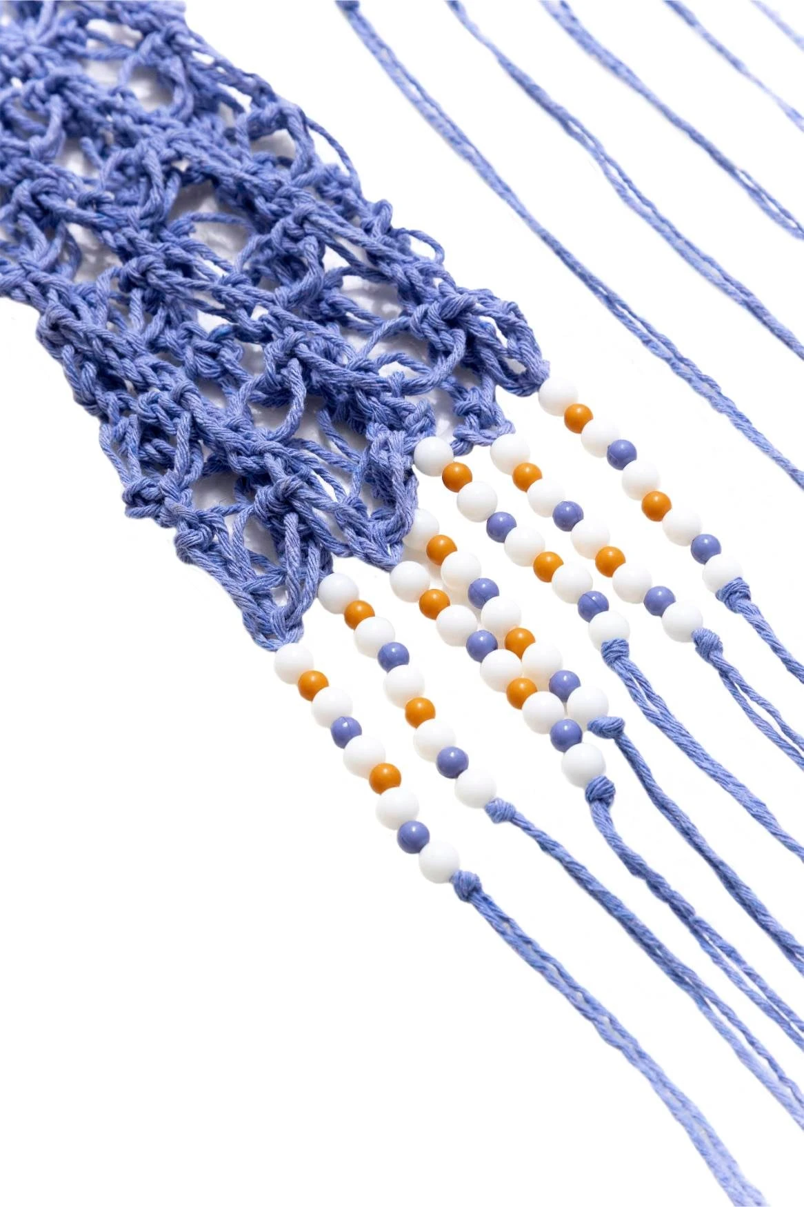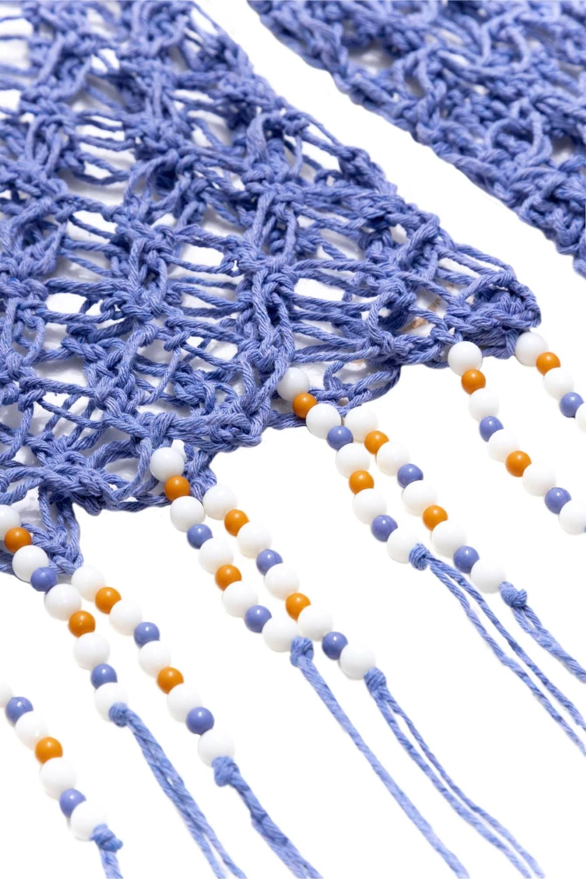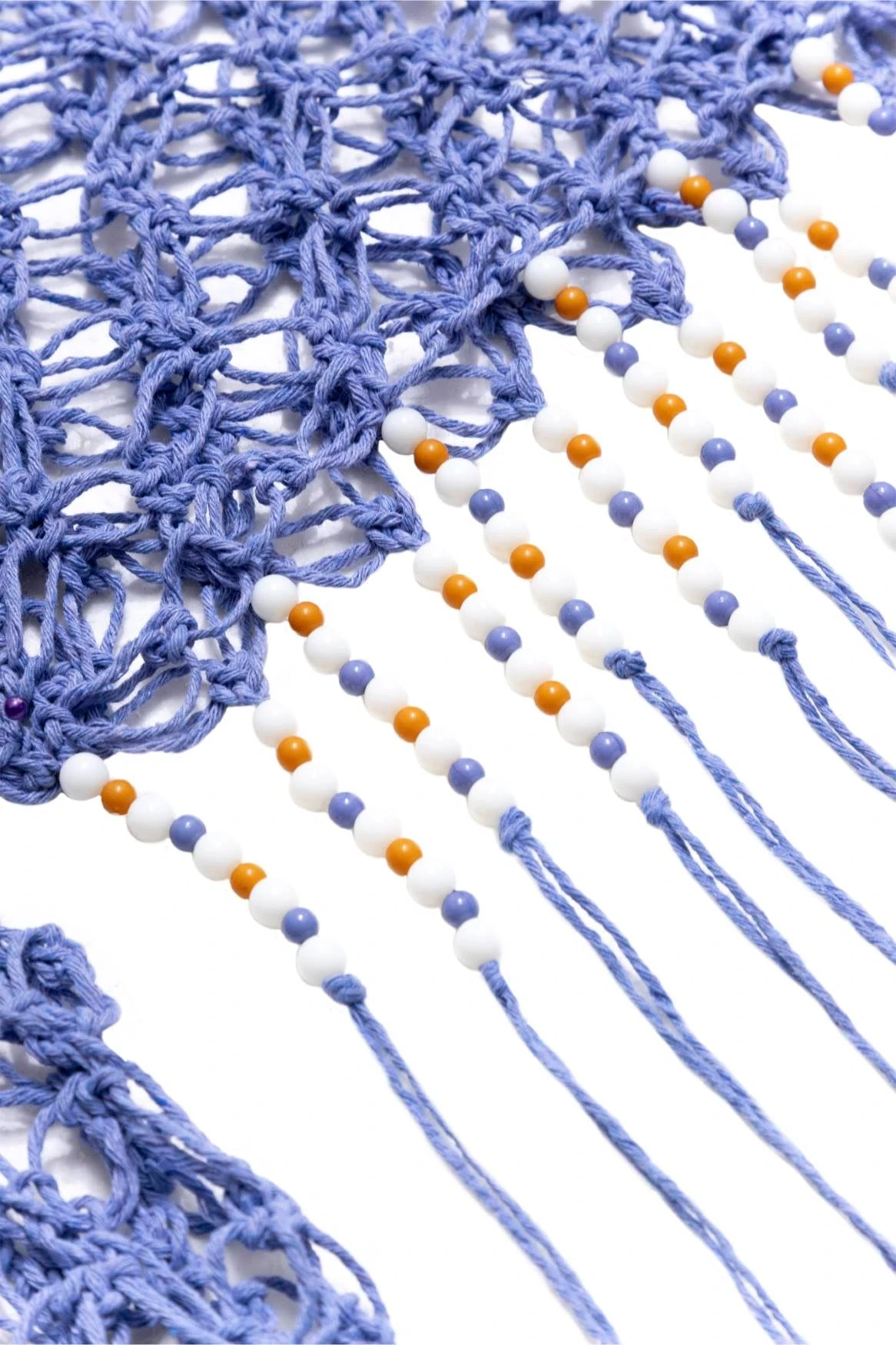 Our Tory shirt is a special piece of this collection. Crocheted, finished with a fringe trim and beaded details handmade by our artisans.