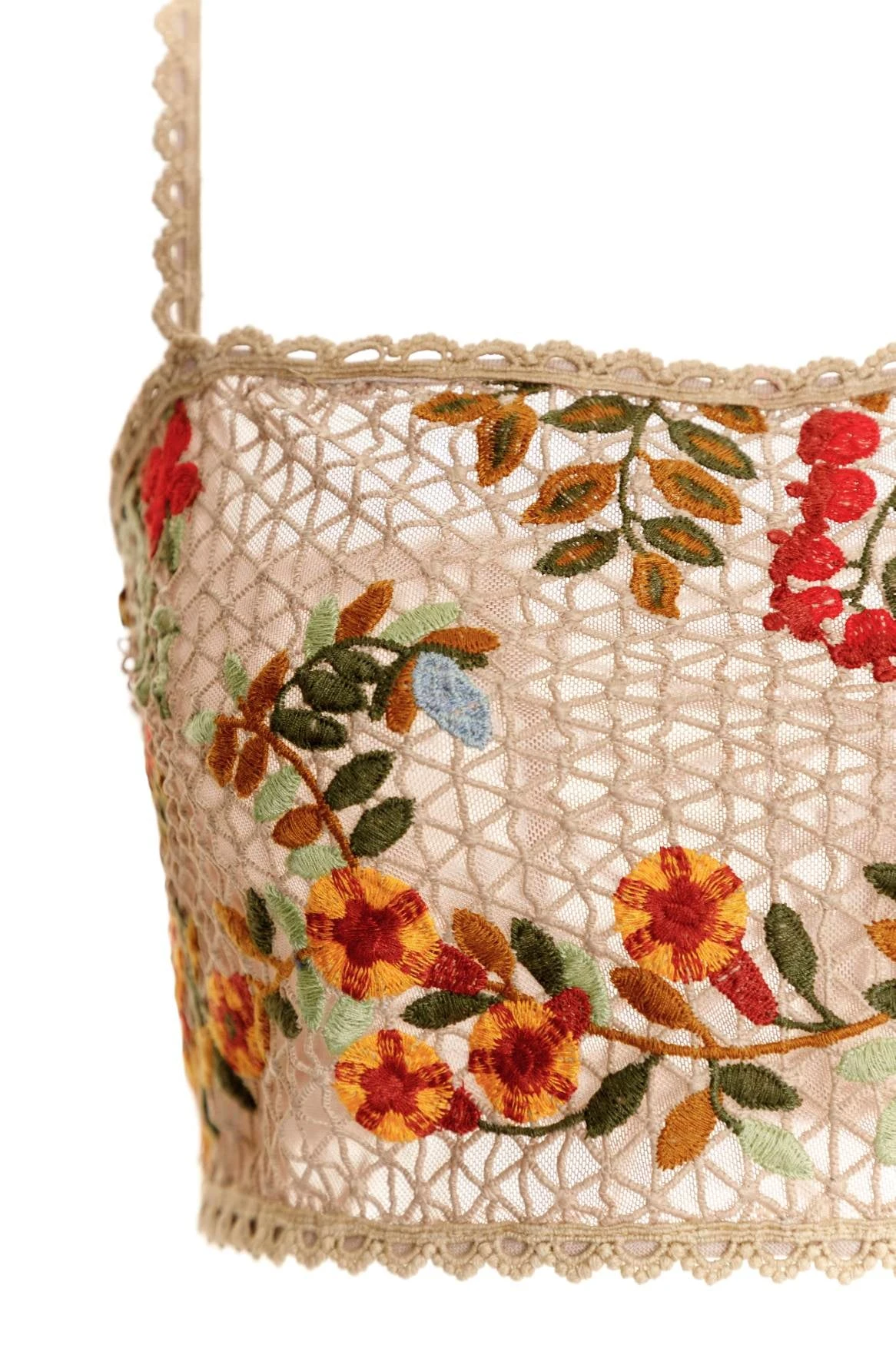 The Vicky Crop Top is a sartorial delight, blending intricate trim details with the delicate allure of sheer fabric. Adjustable straps ensure a perfect fit, offering both support and versatility. This piece is ideal for layering or as a stand-alone statement, making it a must-have for those who covet a touch of bohemian elegance.
